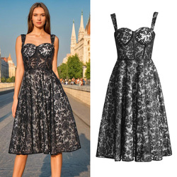 2025レディースエレガントなレトロな夏のドレスレース装飾ビンテージGlamコルセットウエストミディ女性のための長さ